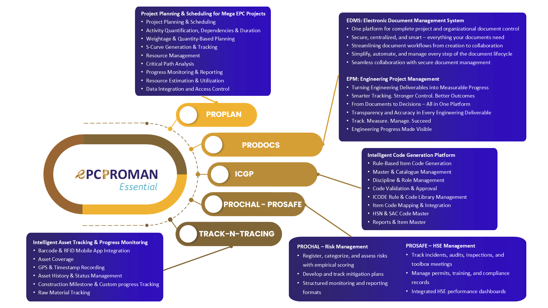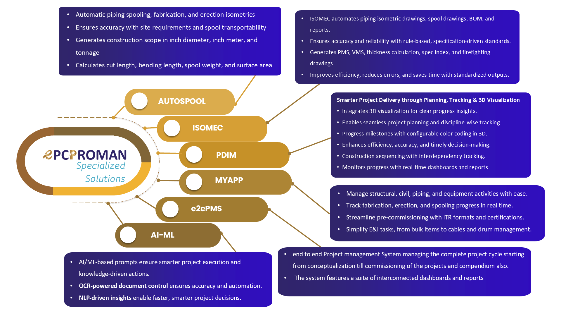 News:EPCPROMAN secures the EPCPROMAN ENTERPRISE order for PEG Engineering & Contracting DMCC, UAEEPCPROMAN has been awarded the EPCPROMAN ENTERPRISE order by Gradiant International Holdings Pte. Ltd., SingaporeEPCPROMAN bags the AUTOSPOOL order for Robt Stone (ME) LLC, UAEEPCPROMAN software provided for the EPCC-03 PX-PTA ETP project to ION Exchange India at IOCL Paradip Refinery, Odisha.Bagged order for EGOLDERP-OLA from Onshore Construction Limited for complete organizational automation and digitization.Received implementation and services contract from Toyo Engineering for the Integrated Piping Management System using EPCPROMAN and TNT software in IOCL’s VGO HDT P-25 Expansion Project, Panipat, Haryana.SembCorp Marine from Singapore has automated the Piping & Structural Construction of their Shell Crux-Topside Project using EPCPROMAN with TNT Software solutionSmartchem Technologies (STL), a Deepak Fertilisers subsidiary, is using EPCPROMAN and TNT software for their ₹2,200 crore TAN complex at Gopalpur, Odisha. L & T Energy - Hydrocarbon, Chennai has successfully implemented TRACK & TRACING(TNT) & PDIM solutions in DFCU project for HPCL Rajasthan Refinery L & T Energy - Hydrocarbon, Chennai has successfully integrated TRACK & TRACING(TNT) & PDIM solutions with their in-house software.